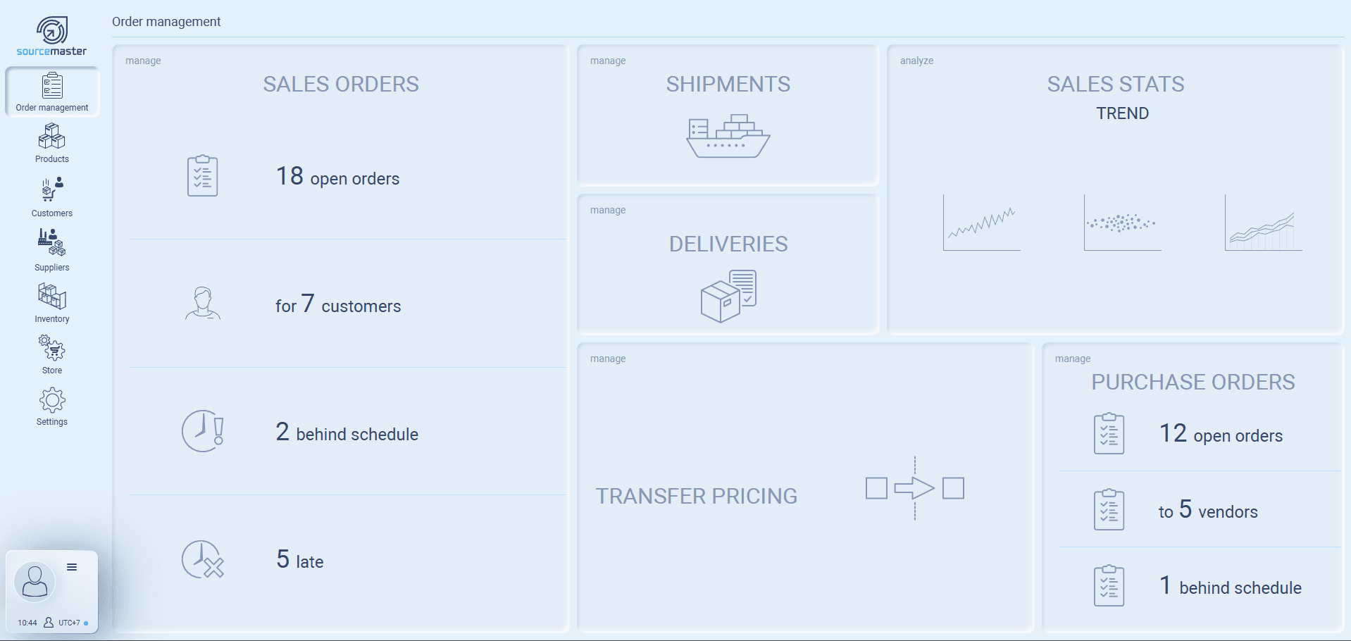 Sourcing, purchasing, warehousing, and sales work seamlessly on one platform with modules dedicated to each role.